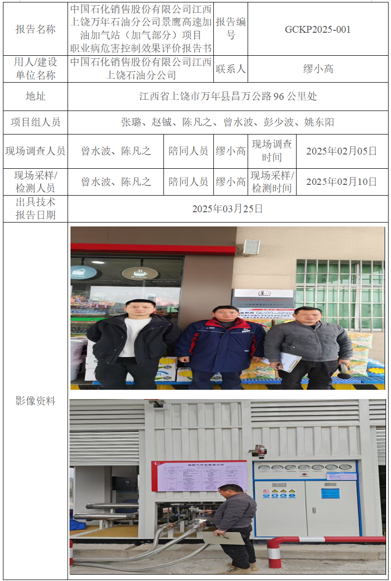 中國(guó)石化銷售股份有限公司江西上饒萬(wàn)年石油分公司景鷹高速加油加氣站(加氣部分)項(xiàng)目 職業(yè)病危害控制效果評(píng)價(jià)報(bào)告書