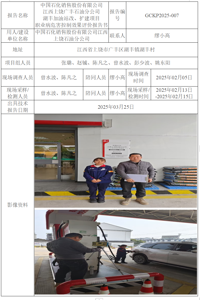 中國(guó)石化銷售股份有限公司 江西上饒廣豐石油分公司 湖豐加油站改、擴(kuò)建項(xiàng)目 職業(yè)病危害控制效果評(píng)價(jià)報(bào)告書