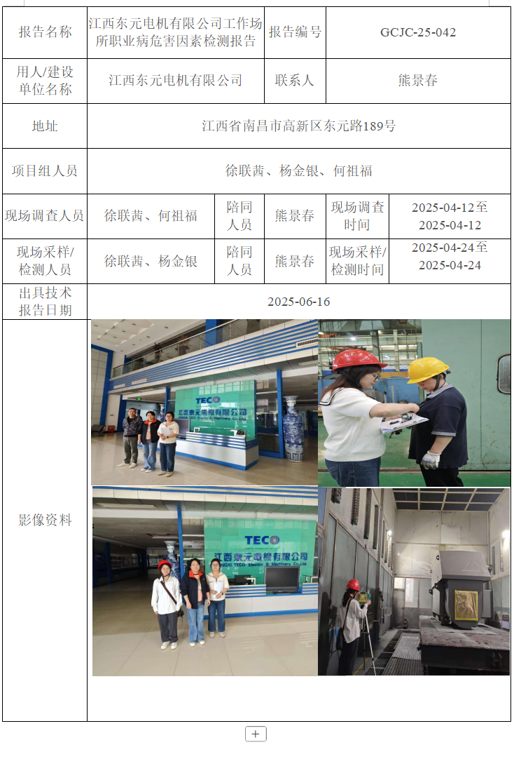 江西東元電機(jī)有限公司工作場所職業(yè)病危害因素檢測報告