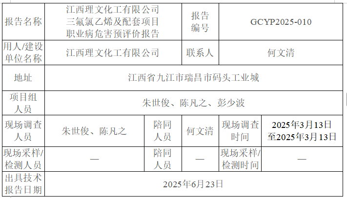 上一篇:江西理文化工有限公司 高端含氟聚合物改造項目 職業(yè)病危害預(yù)評價報告