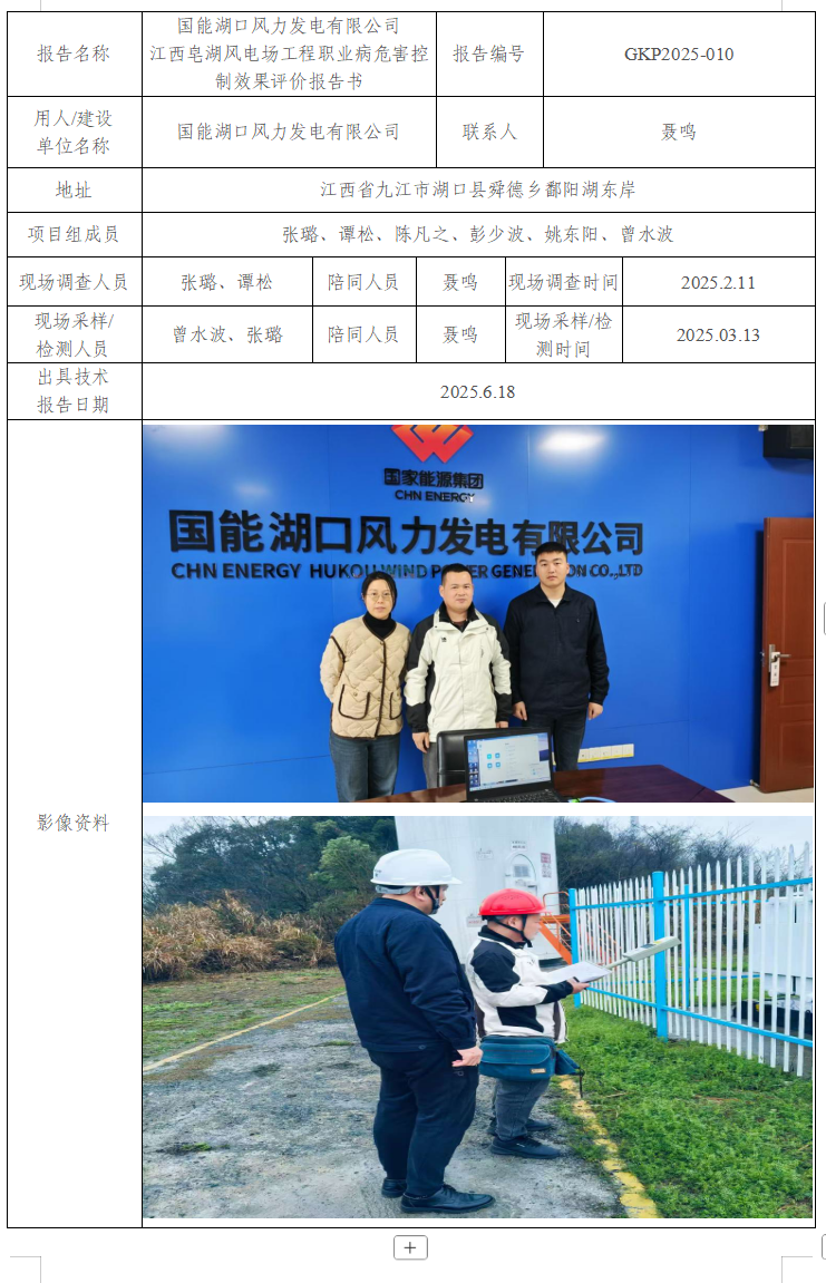 國能湖口風(fēng)力發(fā)電有限公司 江西皂湖風(fēng)電場工程職業(yè)病危害控制效果評價報告書