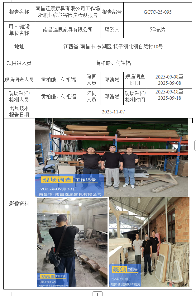 南昌連辰家具有限公司工作場所職業(yè)病危害因素檢測報告