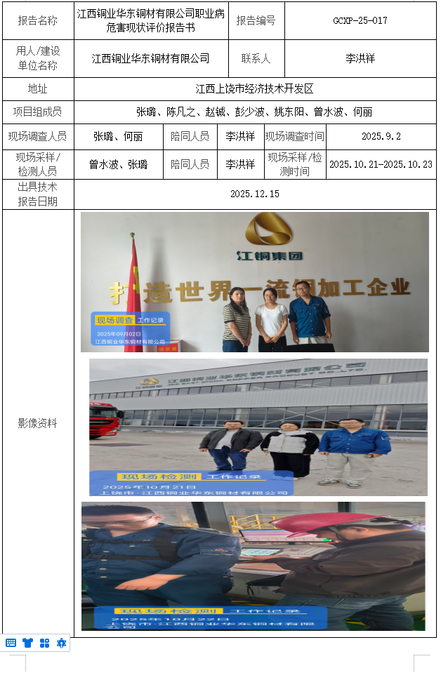 江西銅業(yè)華東銅材有限公司職業(yè)病危害現(xiàn)狀評(píng)價(jià)報(bào)告書(shū)