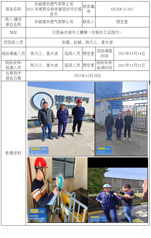 豐城港華燃?xì)庥邢薰?2025年度職業(yè)病危害現(xiàn)狀評價(jià)報(bào)告書