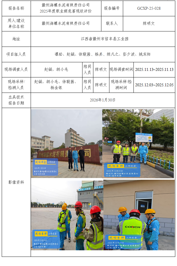 贛州海螺水泥有限責(zé)任公司2025年度職業(yè)病危害現(xiàn)狀評(píng)價(jià)