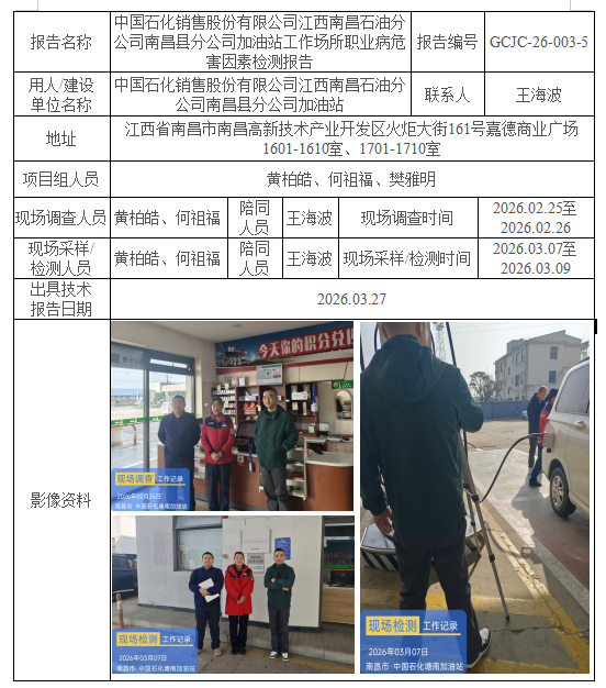 下一篇:中國(guó)石化銷售股份有限公司江西南昌石油分公司進(jìn)賢縣分公司加油站工作場(chǎng)所職業(yè)病危害因素檢測(cè)報(bào)告