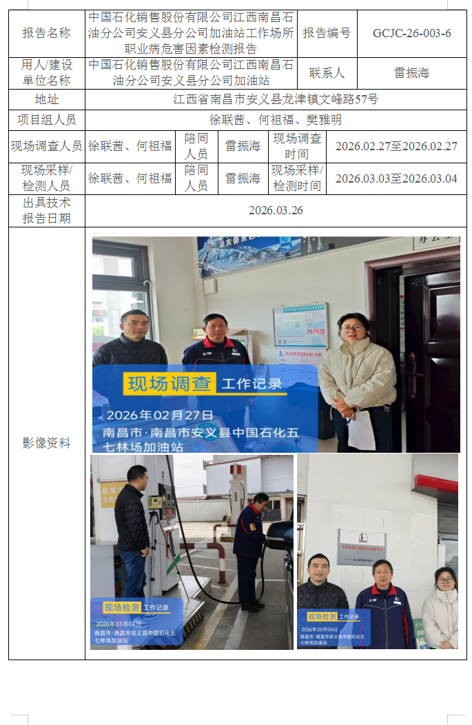 上一篇:中國(guó)石化銷售股份有限公司江西南昌石油分公司進(jìn)賢縣分公司加油站工作場(chǎng)所職業(yè)病危害因素檢測(cè)報(bào)告