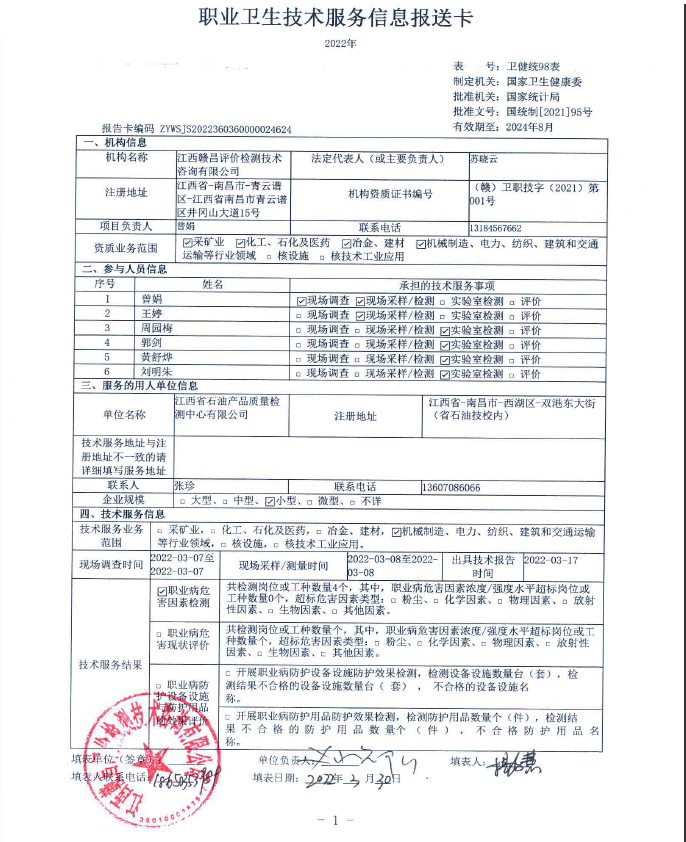 上一篇:南昌公交石油有限責(zé)任公司灣里加油站工作場(chǎng)所職業(yè)病危害因素檢測(cè)報(bào)告