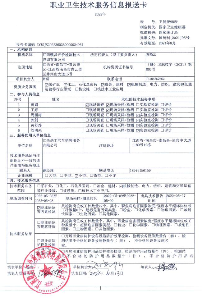 下一篇:九江市浩川消防裝備有限公司工作場(chǎng)所職業(yè)病危害因素檢測(cè)報(bào)告