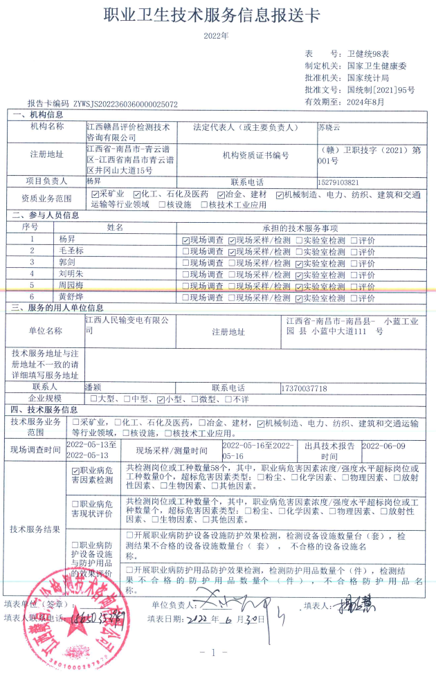 上一篇:江西高速實(shí)業(yè)開(kāi)發(fā)有限公司銅鼓服務(wù)區(qū)銅鼓加油站工作場(chǎng)所職業(yè)病危害因素檢測(cè)報(bào)告